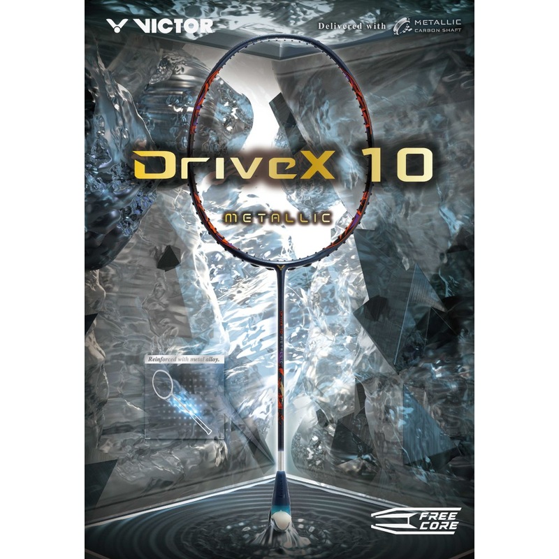 VICTOR DriveX 10 Metallic DX-10METALLIC, VICTOR's latest flagship edition ALL-AROUND racket, not only preserves the power, speed, and exceptional controllability of the DX-9X series, but also introduces the new material METALLIC CARBON SHAFT that takes its