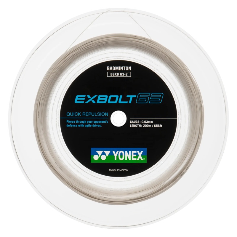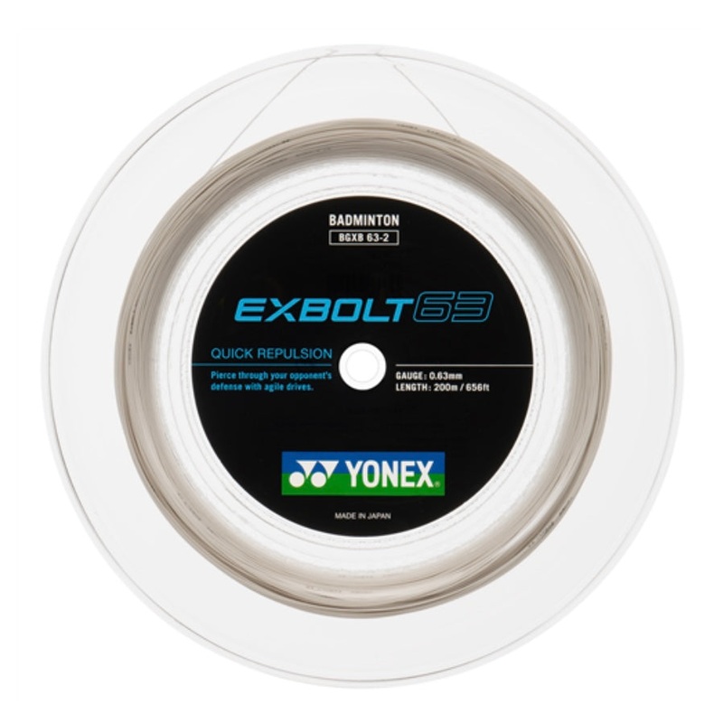 Yonex Exbolt 63 Reel [200m] Badminton String Yonex's newest repulsion string at 0.63mm! Although it might lack in durability, it makes it up in performance withhigher repulsion than most other strings. The first ever rated 11 out of 10 in repulsion. Length